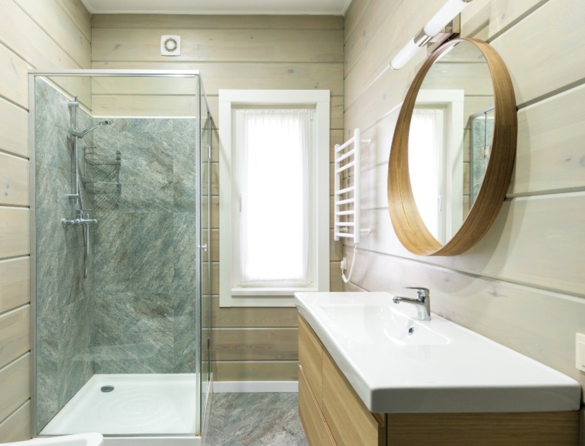• Sitúa la ducha o la bañera junto a la ventana aislada con una mampara transparente de cristal para que no impida el paso de la luz