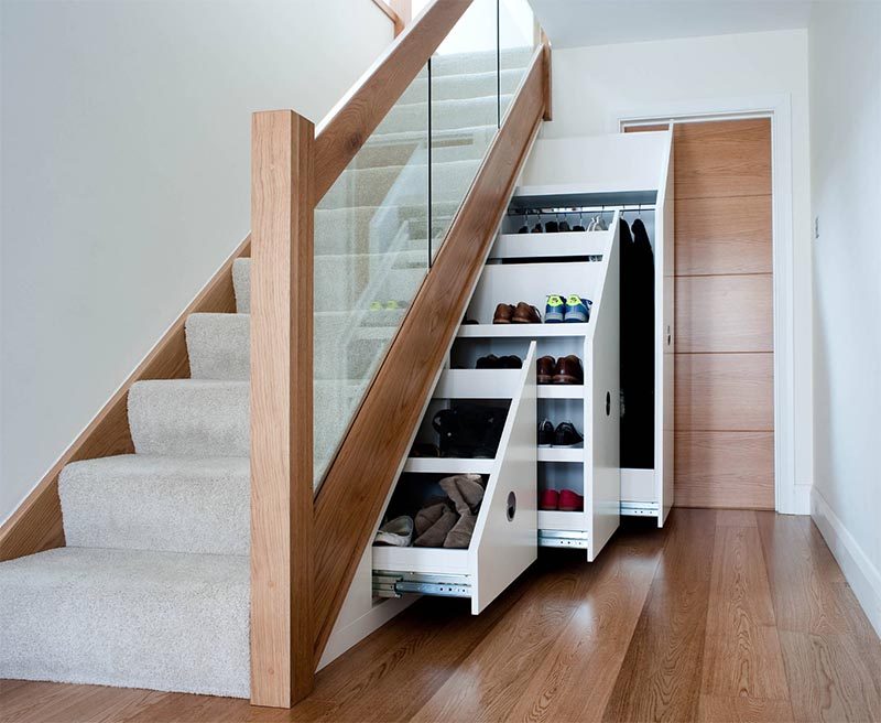 Un armario empotrado bajo las escaleras es la mejor opción posible ¡puedes guardar de todo!