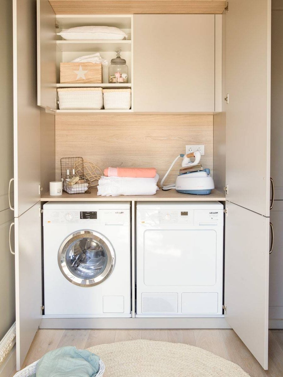 Convertir un armario en una zona de lavandería es una opción perfecta para esconder los electrodomésticos sin romper el equilibrio decorativo de tu hogar.