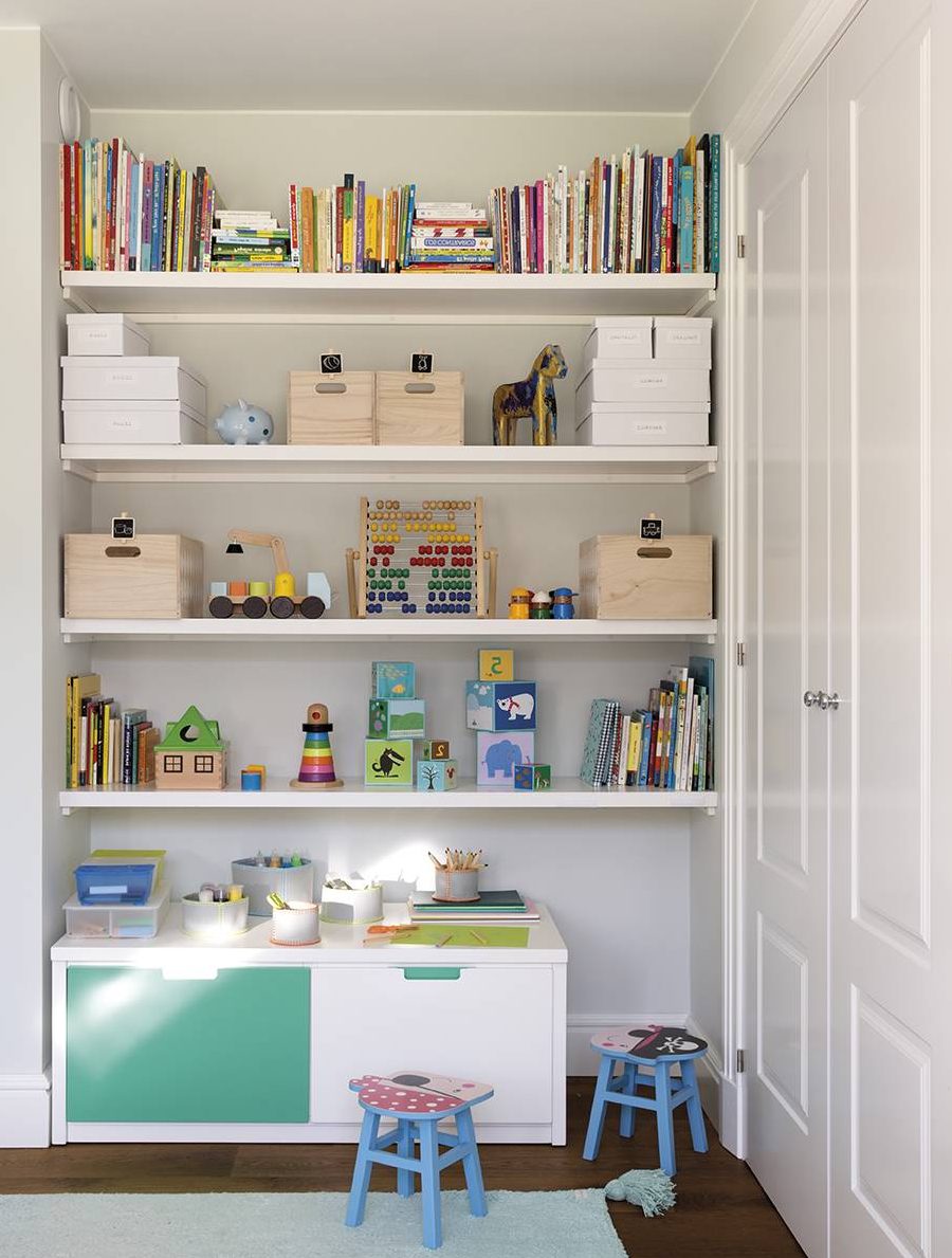 Otra opción en la que puedes convertir tu armario integrado en la pared es en una librería o en una zona de juegos infantil.